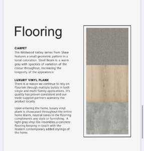 Finishings throughout the home are clean, contemporary, and designed to stand the test of time. Luxury vinyl plank flooring in warm, neutral tones runs throughout the living spaces, complemented by light gray vinyl tile with a modern concrete-inspired look. Bedrooms feature Shaw’s Wildwood Valley Series carpet in Steel Beam—a durable warm gray with subtle tonal variation. White Dove walls accented with Revere Pewter, light gray cabinetry, and stunning quartz countertops create a timeless palette that’s easy to personalize.